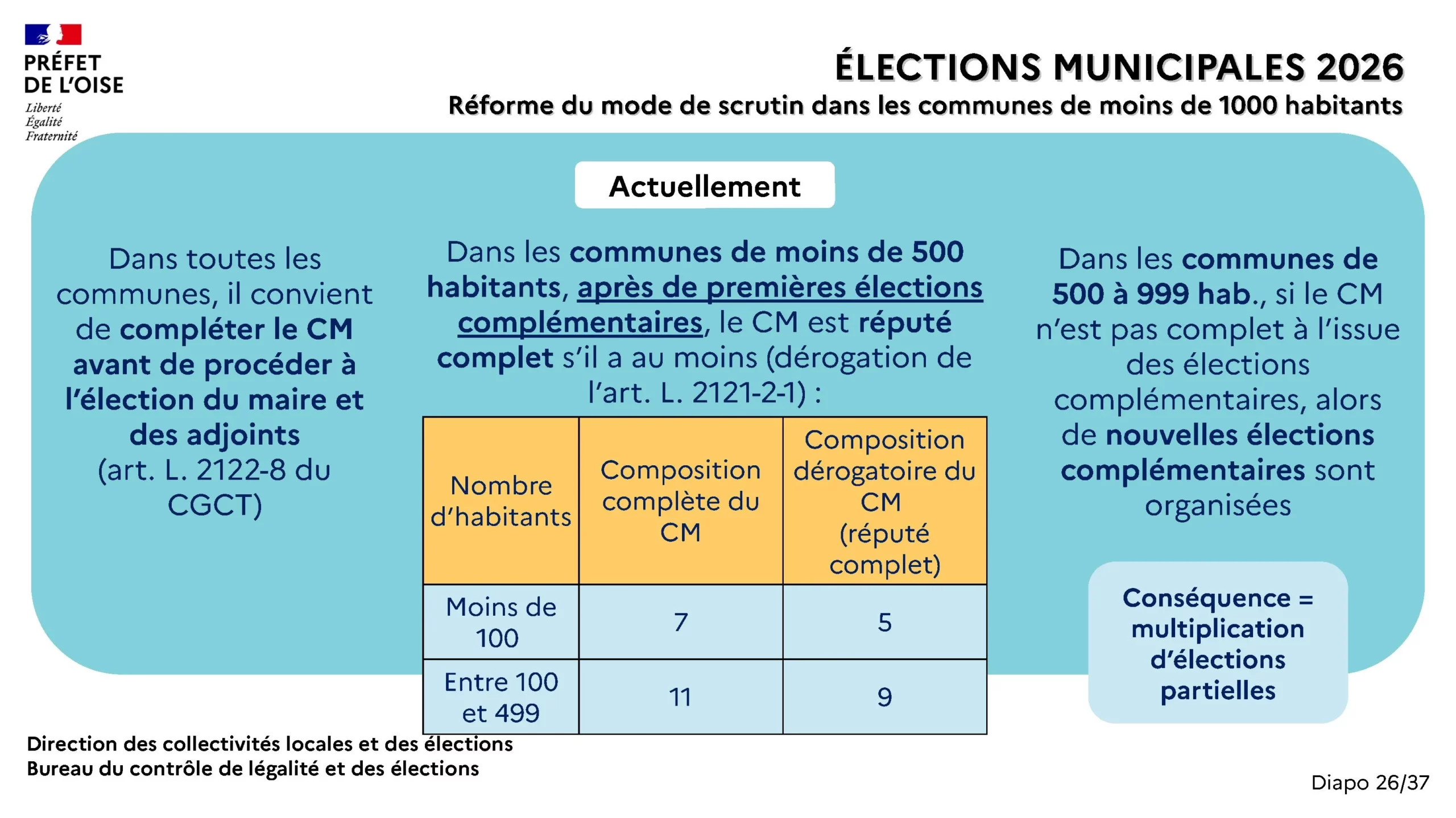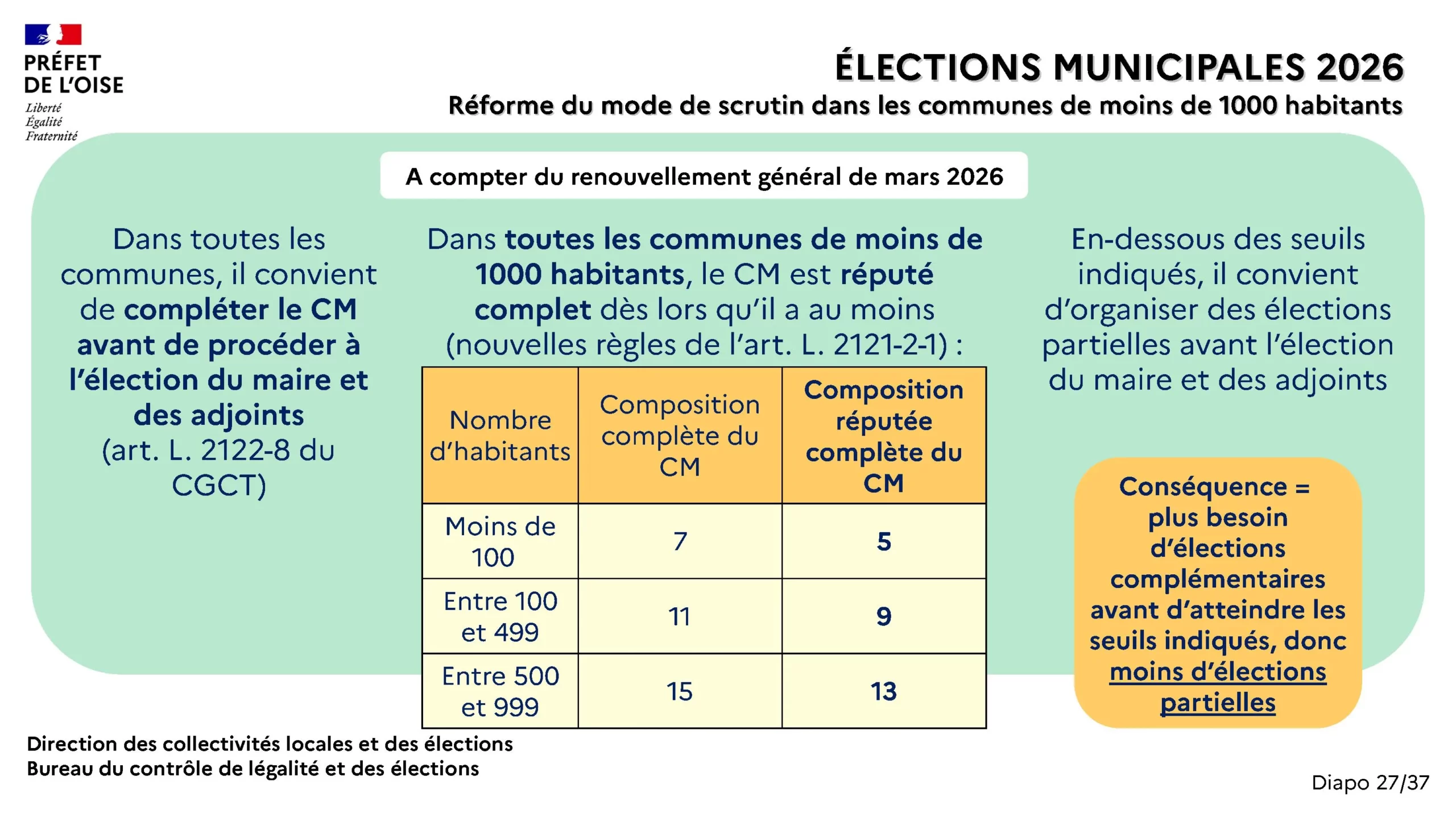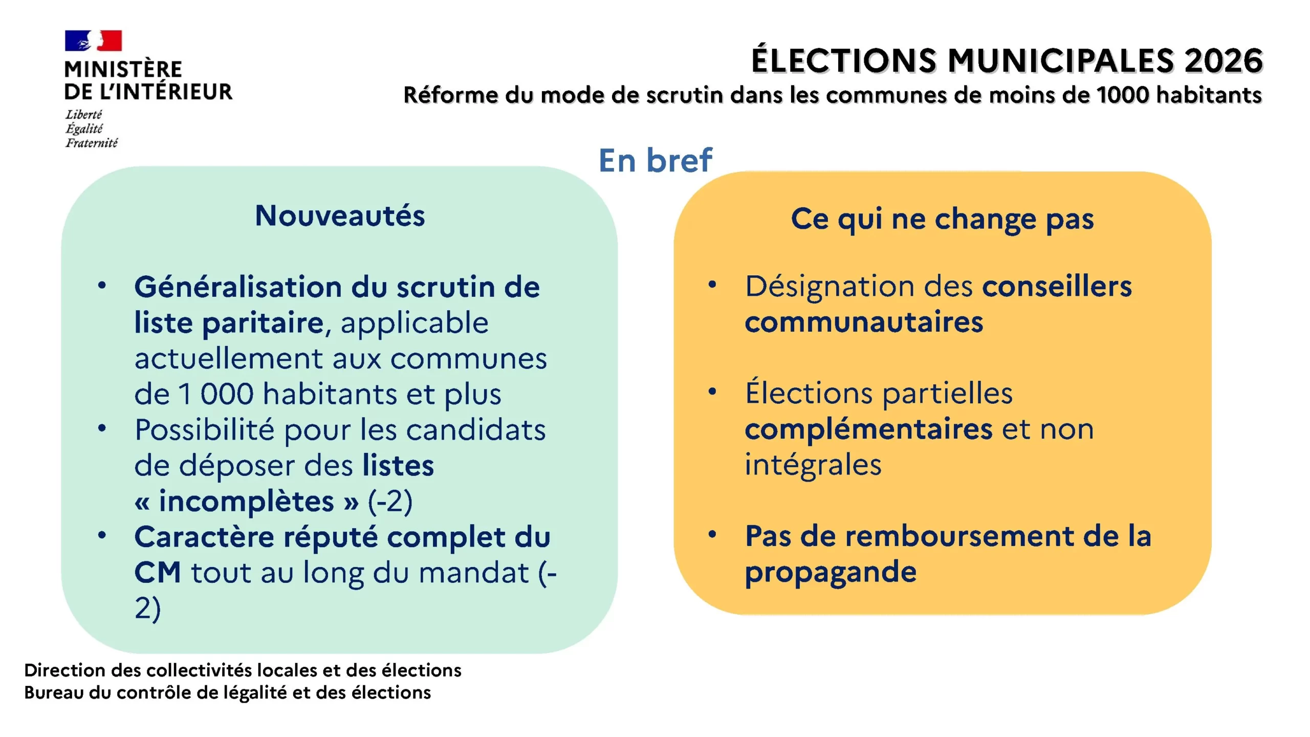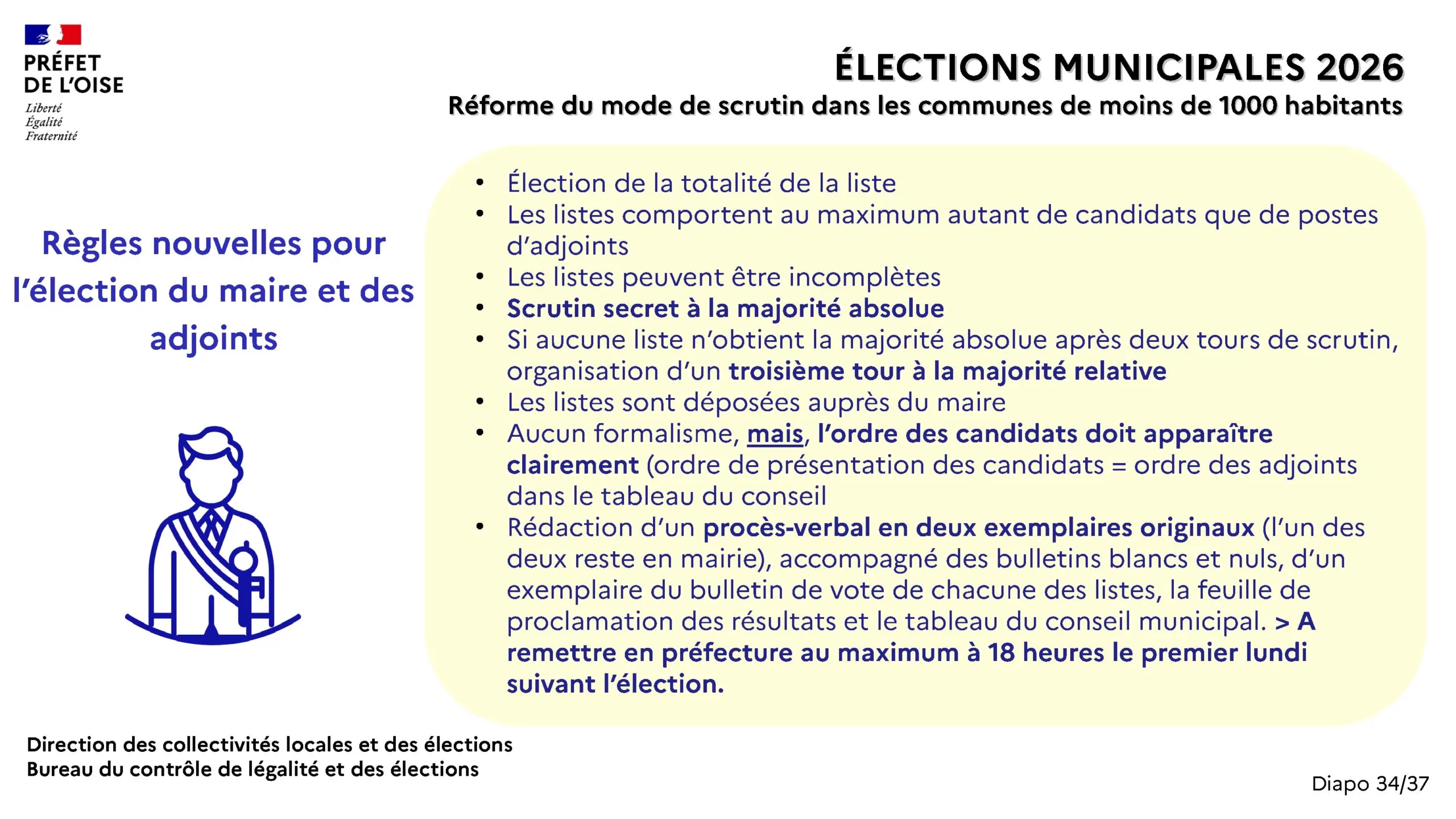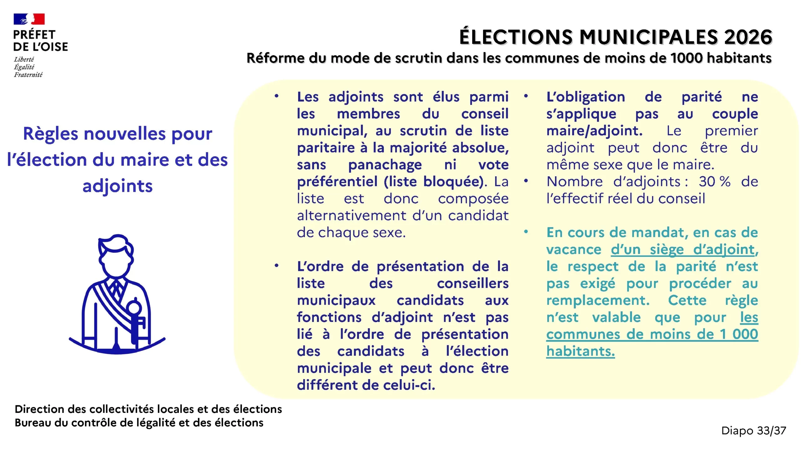 Règles nouvelles pour l’élection du maire et des adjoints.