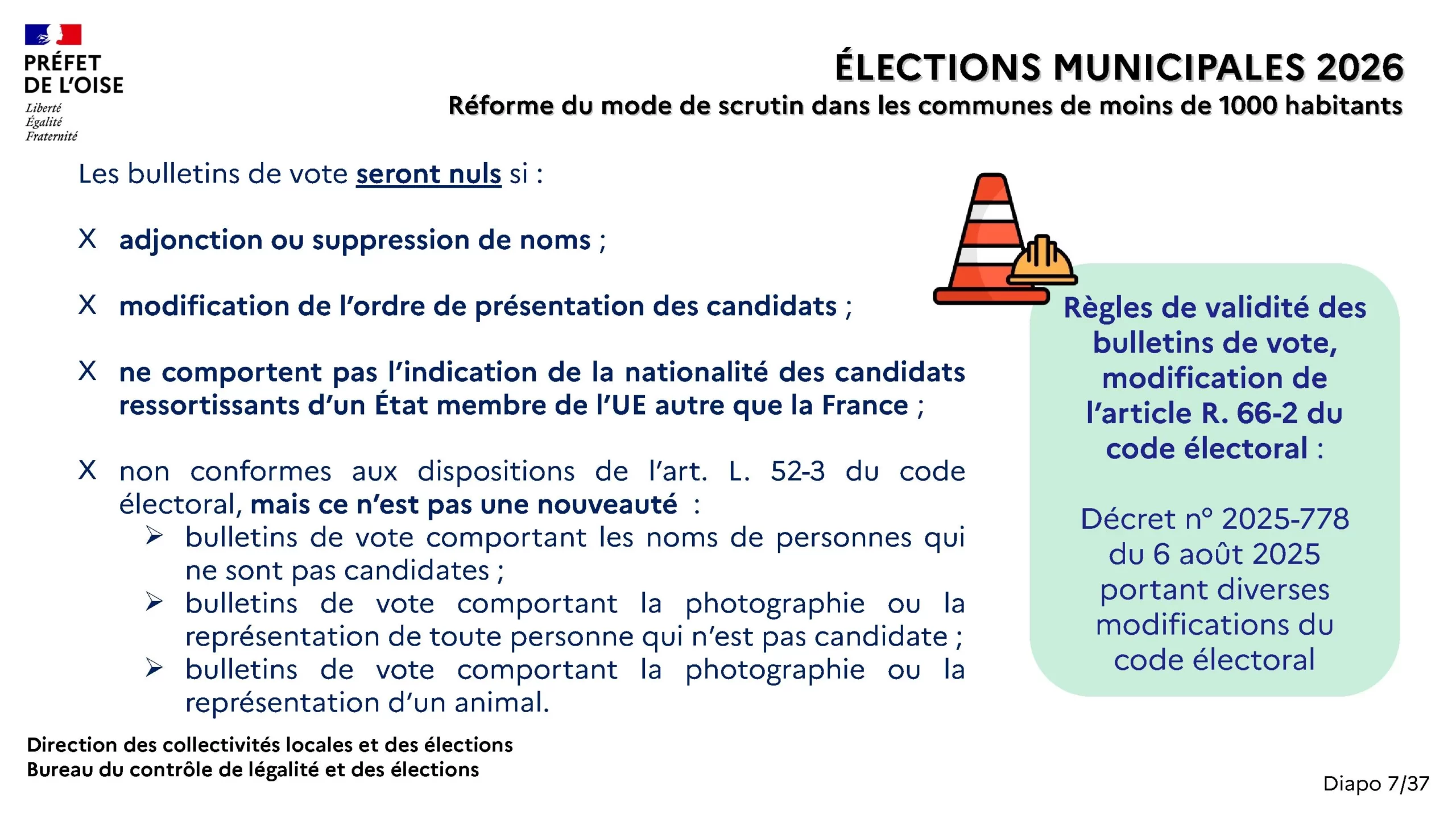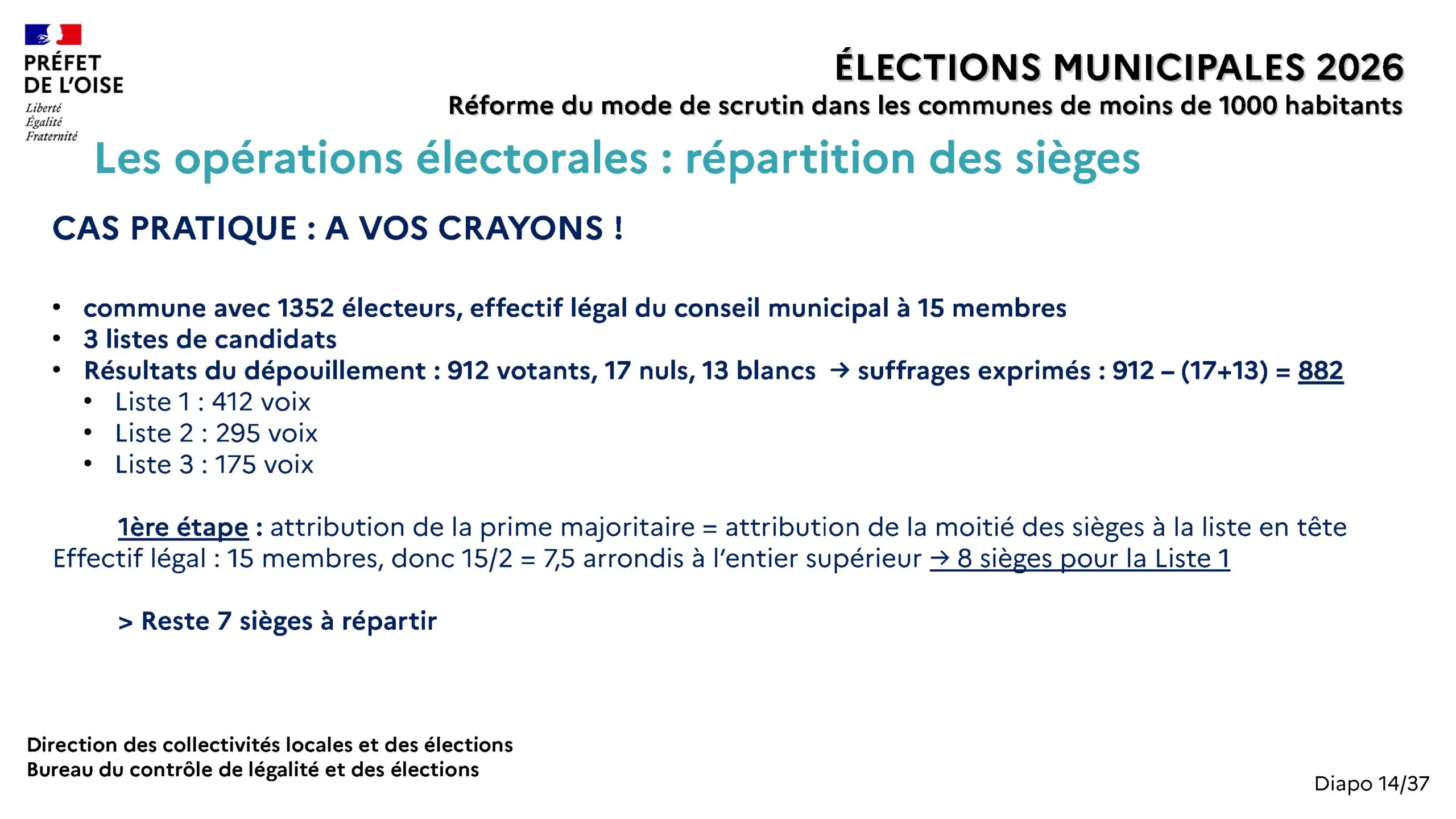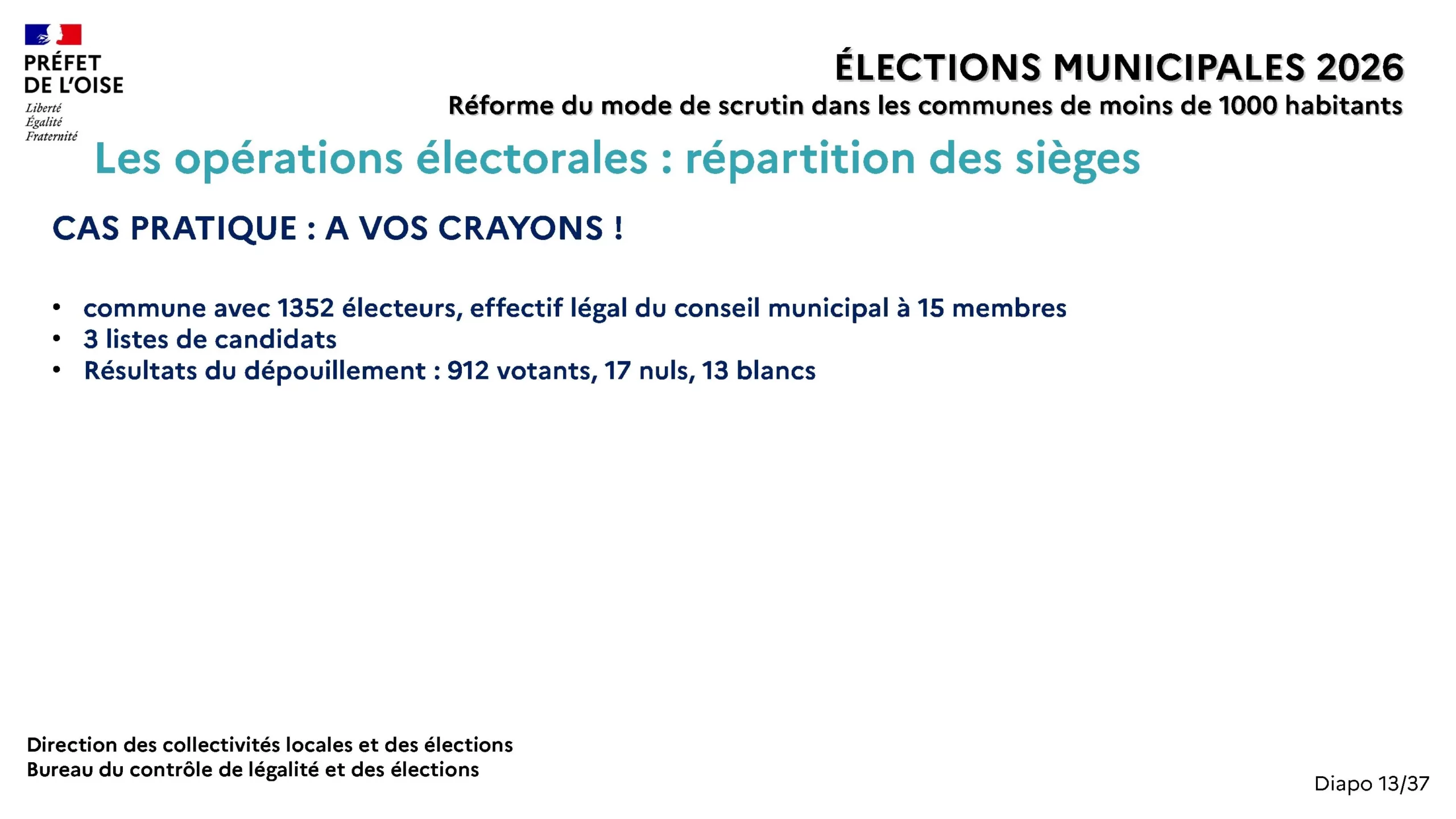 - Aucun formalisme, mais, l’ordre des candidats doit apparaître clairement (ordre de présentation des candidats = ordre des adjoints dans le tableau du conseil