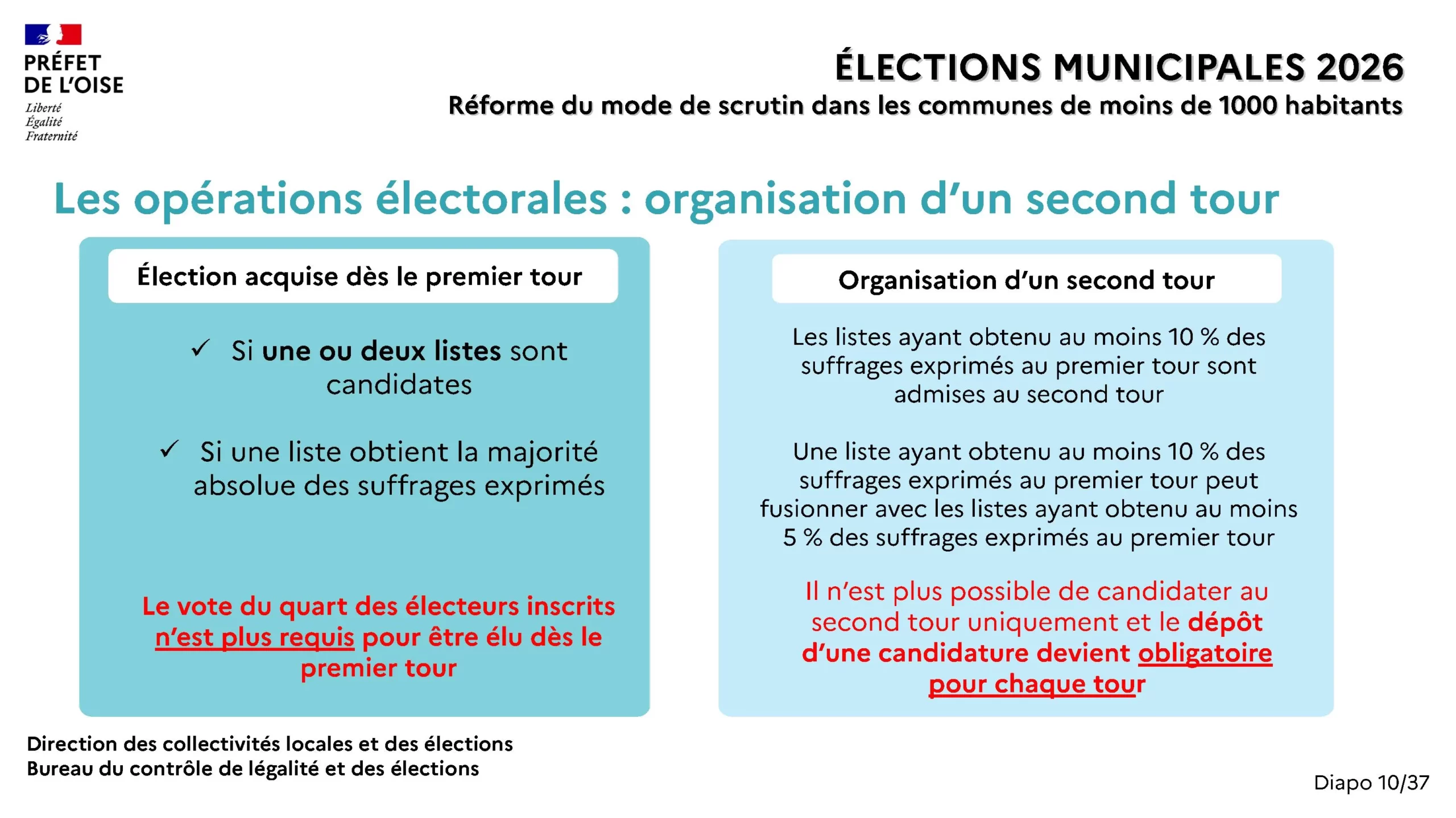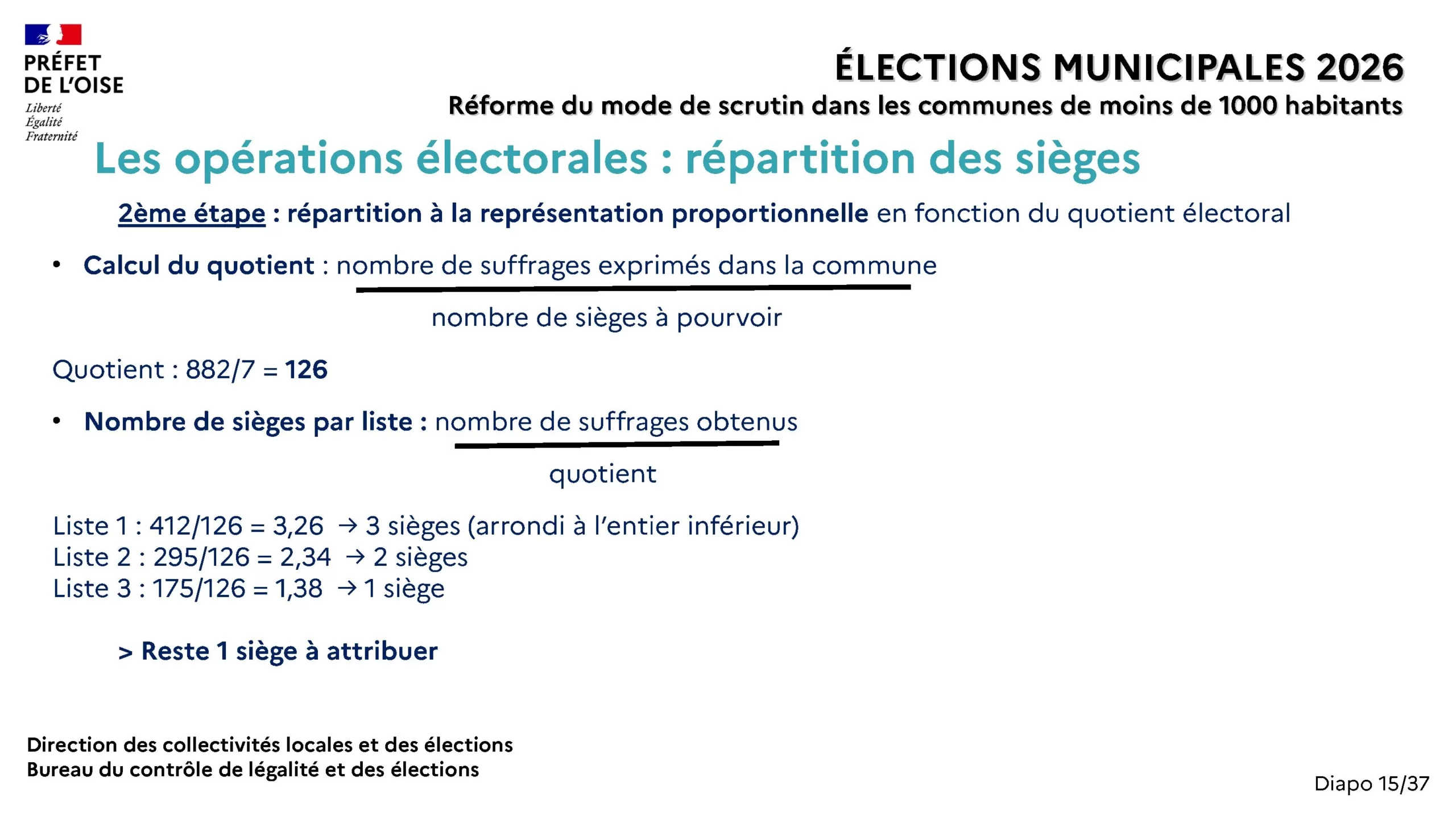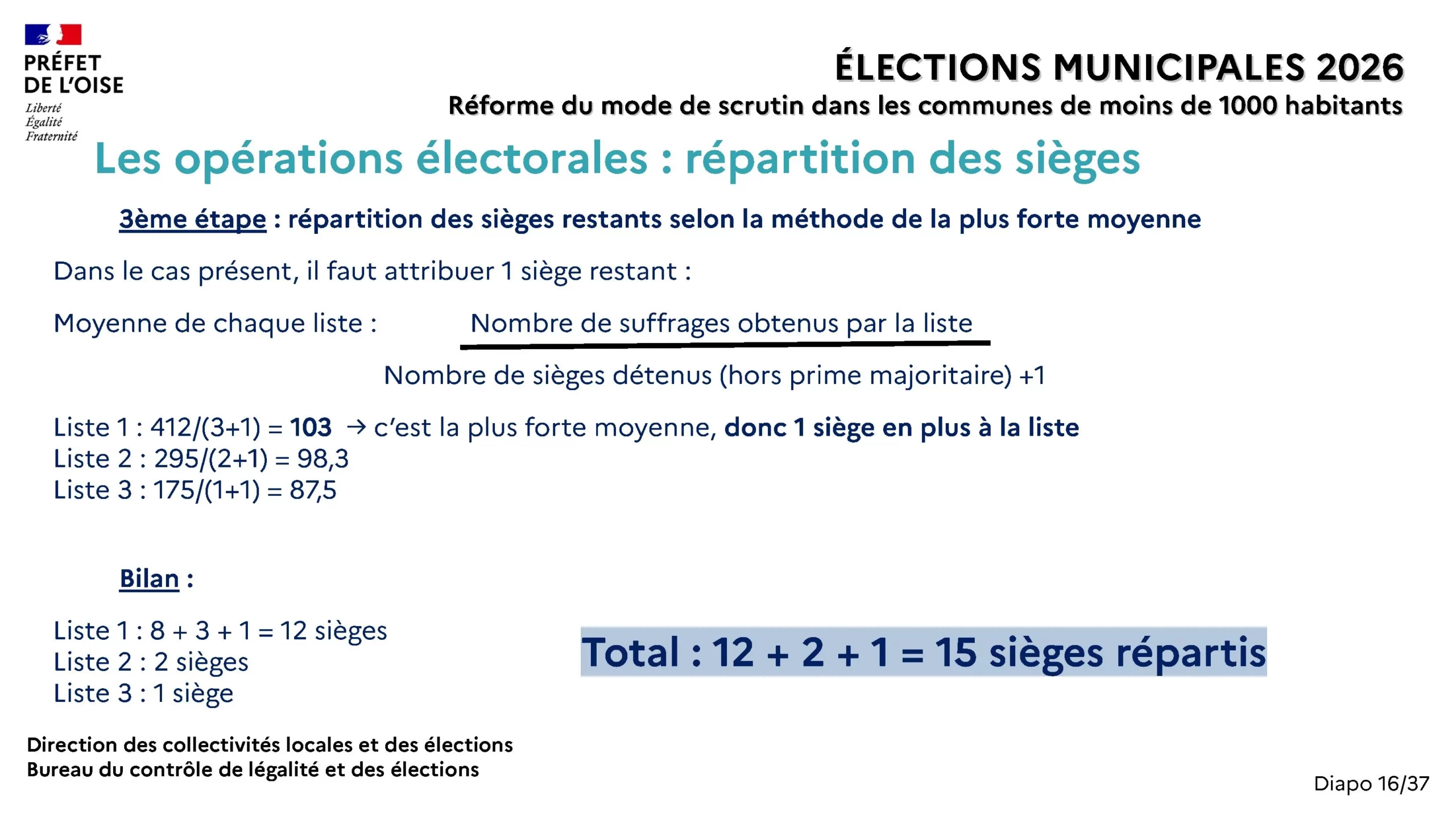 - Si aucune liste n’obtient la majorité absolue après deux tours de scrutin, organisation d’un troisième tour à la majorité relative